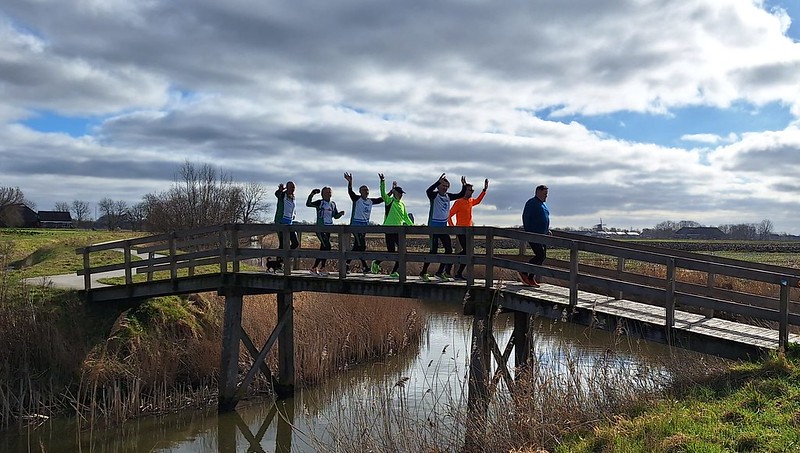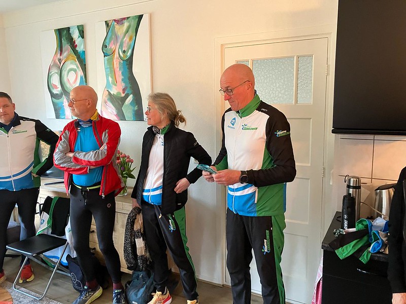 Het was een gezellige sfeer tijdens het lopen en er werd lekker gepraat en genoten van alles . Bij terugkomst in Garrelsweer was er een lekkere after party met drinken en Roomtoeters. We mogen terug kijken op een mooie dag die ten eerste was opgezet door Marjan . En de verbaasde blik van Eric man man ….