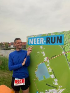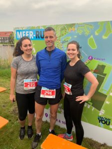 Samen met papa (Menno van der Meer) en mijn zusje (Marleen) stond ik aan de start aan de (v/d) MEER-run! Via Kelly van Runninggirls.nl had ik twee startkaarten gewonnen dankzij onze achternaam. Alle drie hadden we ons ingeschreven voor de 7KM (je kon ook twee rondes lopen en 14KM doen). De route was veelal onverhard, door en langs het veld, bospaadjes en langs het water. De laatste kilometer was weer verhard en liep langs mooie huizen in Meerstad.