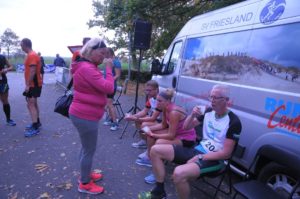 Om 14.00 uur werd het startschot gegeven, en de lopers gingen van start. Vanaf het restaurant rechtsaf de weg op naar de Eekwerderdraai en daar aangekomen naar rechts en weer rechts het bos in. De paden waren droog en de omgeving prachtig met de mooie herfstkleuren van de bomen. Richting de oprijlaan, die heen en terug werd gelopen en daarna door naar de bult via het betonpad en de met grint verharde zandpaden naar de bult. Op de bult stonden trouwe supporters, meneer en mevrouw Bos ons aan te moedigen. Via de vijver, het dierenweidje naar het restaurant. Daar linksaf, over de parkeerplaats en recht en nogmaals links richting Appingedam tot bijna bij de brug. Hier werd gekeerd en op naar de start. Bij de eerste doorkomst was er 5 km afgelegd en konden de 5 km lopers stoppen, de 10 km lopers liepen nog een rondje. Iedereen kwam heelhuids over de finish. Het was weer een leuke ronde, op naar volgend jaar met de volgende editie van het Buurloopcircuit 2019.